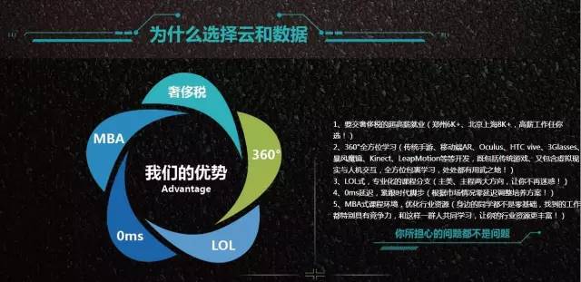 云和教育是云和数据旗下高端泛 IT 职业教育机构,成立多年,作为 Unity 在河南的官方战略合作伙伴,为合作联盟企业培养数百名VR人才。云和数据自主研发的虚拟试衣间、过山车和瓷器工坊的虚拟现实项目更是引爆了河南的VR市场,云和数据作为我省首个拥有”虚拟试衣间”的科技公司,在2016年8月11日接受河南权威媒体《河南日报》的采访,并引发《人民日报》等各大媒体的争相报道。