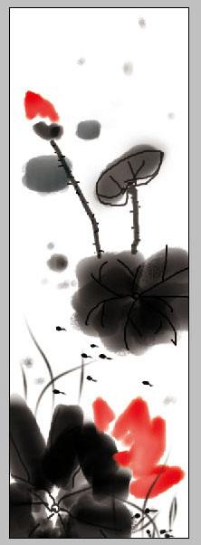 绘画之前,我们需要先设置好画笔属性,调出类似水墨感觉的笔刷。然后就找一些水墨画来参考一下,按照自己的思路画出简单的水墨画。
