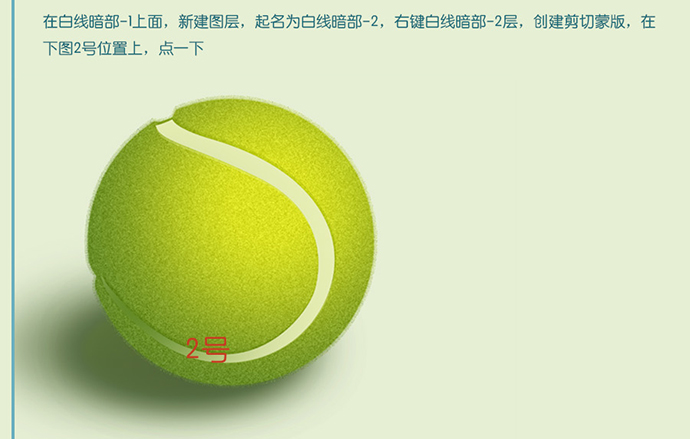 在白线暗部-1上面,新建图层,起名为白线暗部-2,右键白线暗部-2层,创建剪切蒙版,在下图2号位置上,点一下。