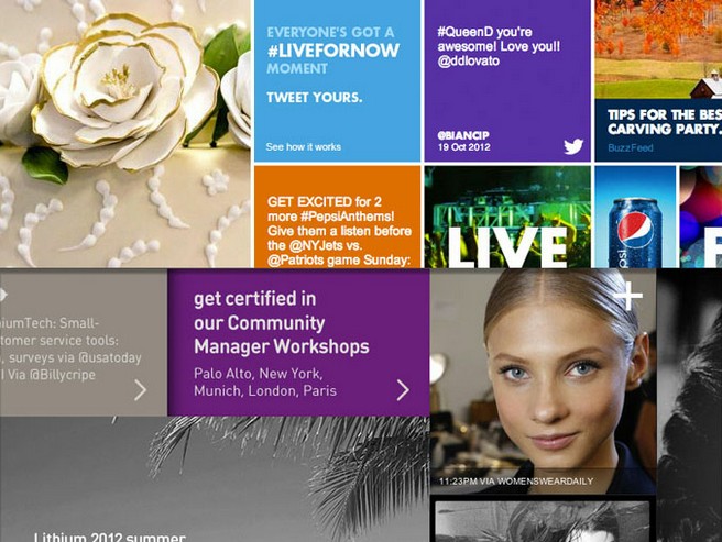 这一设计方法主要是引入了方块的网格设计,这些方块要么是纯色块配上文字,要么是方形照片配上文字。“简洁”是吸引用户的一大原因。不同的色块放在一起形成强烈的对比,容易引起用户的视觉兴趣,进而继续探索下去。