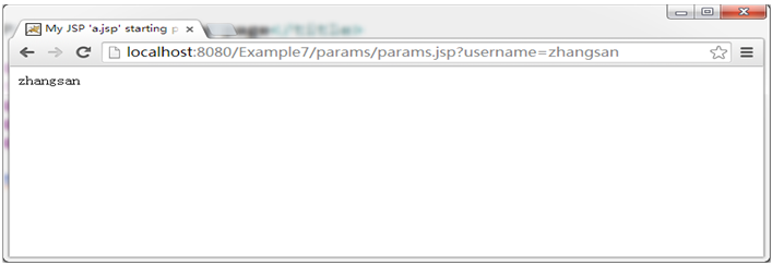 (2)将Example7发布到服务器,然后启动服务器,在浏览器端访问:http://localhost:8080/Example7/params/params.jsp?username=zhangsan,浏览器显示结果如图1-1所示: