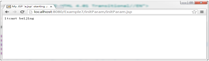 (3)在浏览器端访问:http://localhost:8080/Example7/initParam/initParam.jsp,浏览器显示结果如图1-5所示: