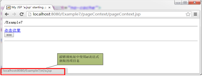 (2)在浏览器端访问:http://localhost:8080/Example7/pageContext/pageContext.jsp,浏览器显示结果如图1-8所示: