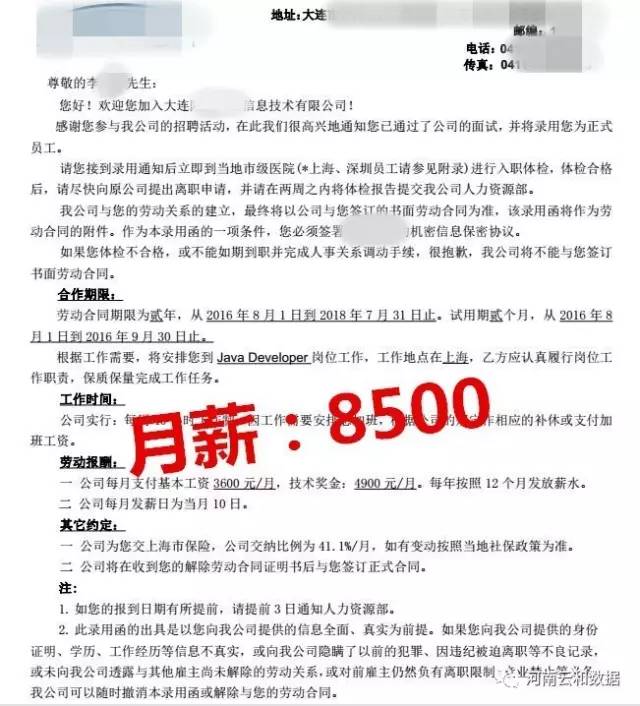 紧张、充实的学习,终于在最后迎来了期盼已久的面试,在云和老师的推荐下,我抓住了多次的面试机会,也得到了更多的锻炼,最终我选择了大连**信息技术(上海)有限公司,担任Java 开发工程师,目前月薪8500元。