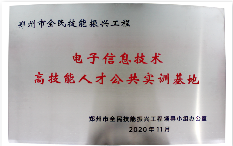 2020年11月17日上午,郑州市2020年高技能人才公共实训基地授牌仪式顺利举行。郑州市人力资源和社会保障局局长、党组书记李德耀,党组成员、调研员丁进芳等领导出席了授牌仪式。
