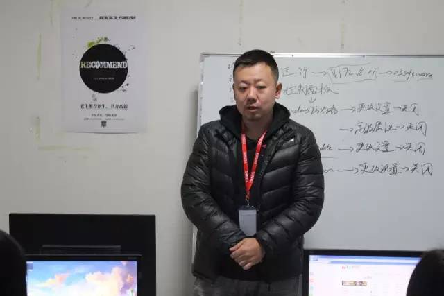 然后是VR教研组组长李老师给同学们详细的介绍了虚拟现实课程安排、学习周期、前景等等。李老师随后对同学们今后的学习提出了实用的建议,同时他还希望大家要克服学习路上的一切艰辛,成为技术实力和职业素养兼备的企业急需的高端人才。