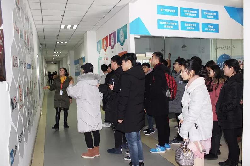 体验过后,同学们走进教学区,实地观摩云和数据的教学模式与师生风采,看到学员作品和就业喜报展示后,有同学表示“我对UI设计比较感兴趣,毕业后也想来云和数据提升一下,重点是我也想拿高工资啊”!