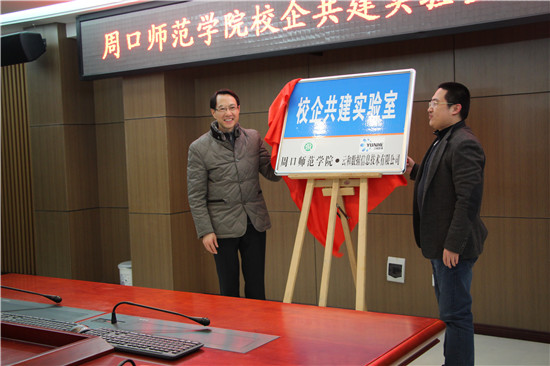 1月6日上午,河南云和数据信息技术有限公司(以下简称云和数据)与周口师范学院在学院行政楼五楼会议室里举行了校企共建实验室合作协议签约仪式,云和数据公司副总经理王小石携院校部主管及职业规划顾问参加了此次签约仪式,周口师范学院院长李义凡、副院长马金岭等诸位领导代表也出席了此次签约仪式。