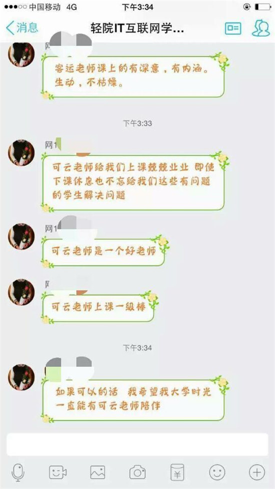 四天的课程结束,同学们也真是舍不得,全场起立鼓掌合影留念不说,还在短训班的群里各种表扬(在此晒出一部分),作为云和大家庭的一员,请允许小编“自恋”一下~~嘻嘻(*^__^*)